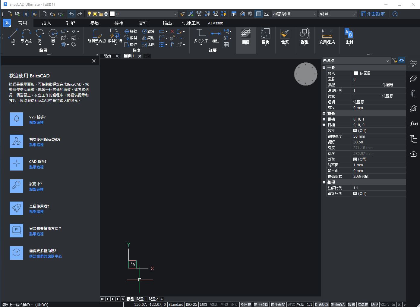 啟動器在您選擇的工作區中啟動BricsCAD。