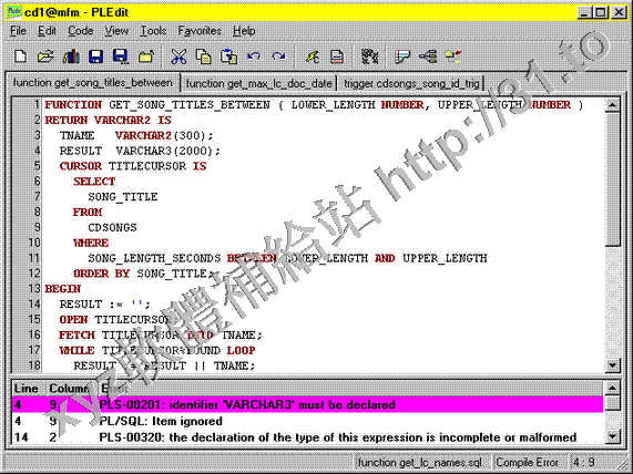 PLEdit allows editing and compiling of PL/SQL code modules