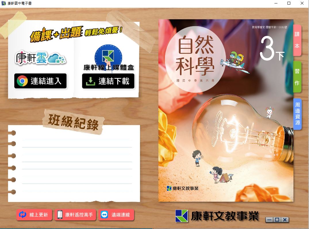 111學年下學期 國中 康軒版 自然電子書 3年級(含課本、活動紀錄簿含解答、教學資源)教學光碟