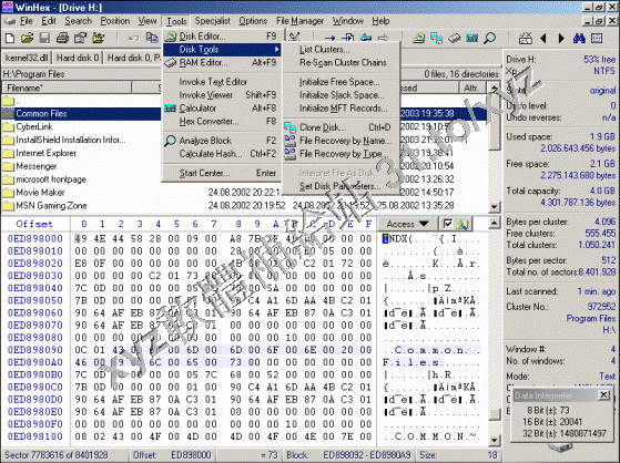 FAT16、FAT32 和 NTFS )自動搜尋編輯,文件比對和分析,128 位加密,數據恢復,