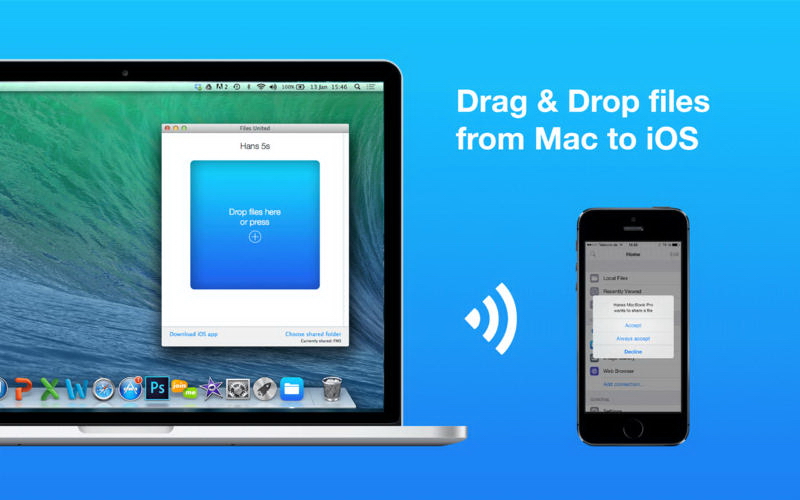 - Simple drag & drop of files to your iOS device using WiFi