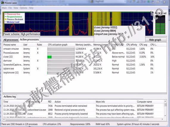 Process Lasso 是一款獨特的調試級別的系統優化工具,主要功能是動態調整各個進程的優先級並
